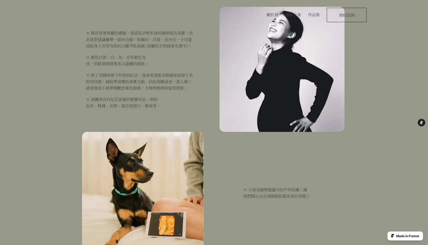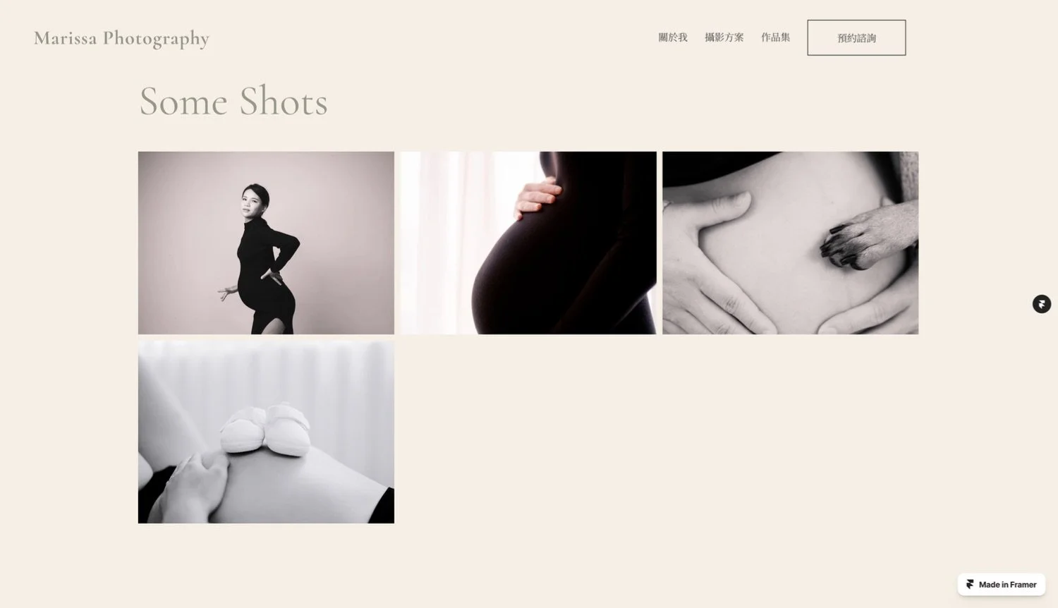 為 Marissa Photography 重新打造這座作品集網站,我的核心任務,是將其從一個簡單的作品集,蛻變為一個獨具攝影師個人風格、同時能完美展示其精髓作品的線上藝廊。我的構想是讓網站本身就像一幅細膩的畫作,以捕捉真實情感、呈現細膩視覺美學為軸心,吸引尋求孕婦、親子家庭與寵物攝影的潛在客戶預約,並深度建立攝影師的品牌形象。